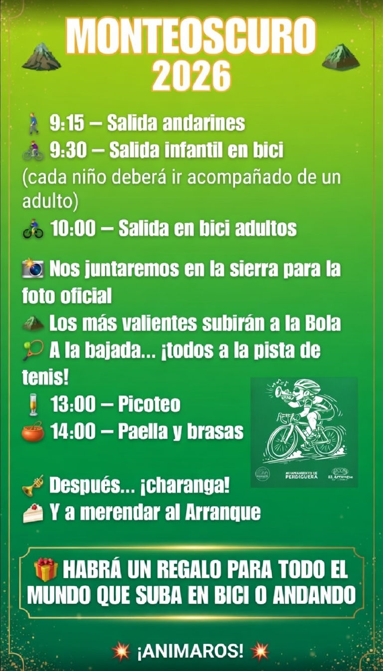 Ya podéis consultar el cartel con el programa de actividades, donde encontraréis horarios, lugar de quedada y todos los detalle de la actividad organizada por el Club Ciclista de Perdiguera 👇